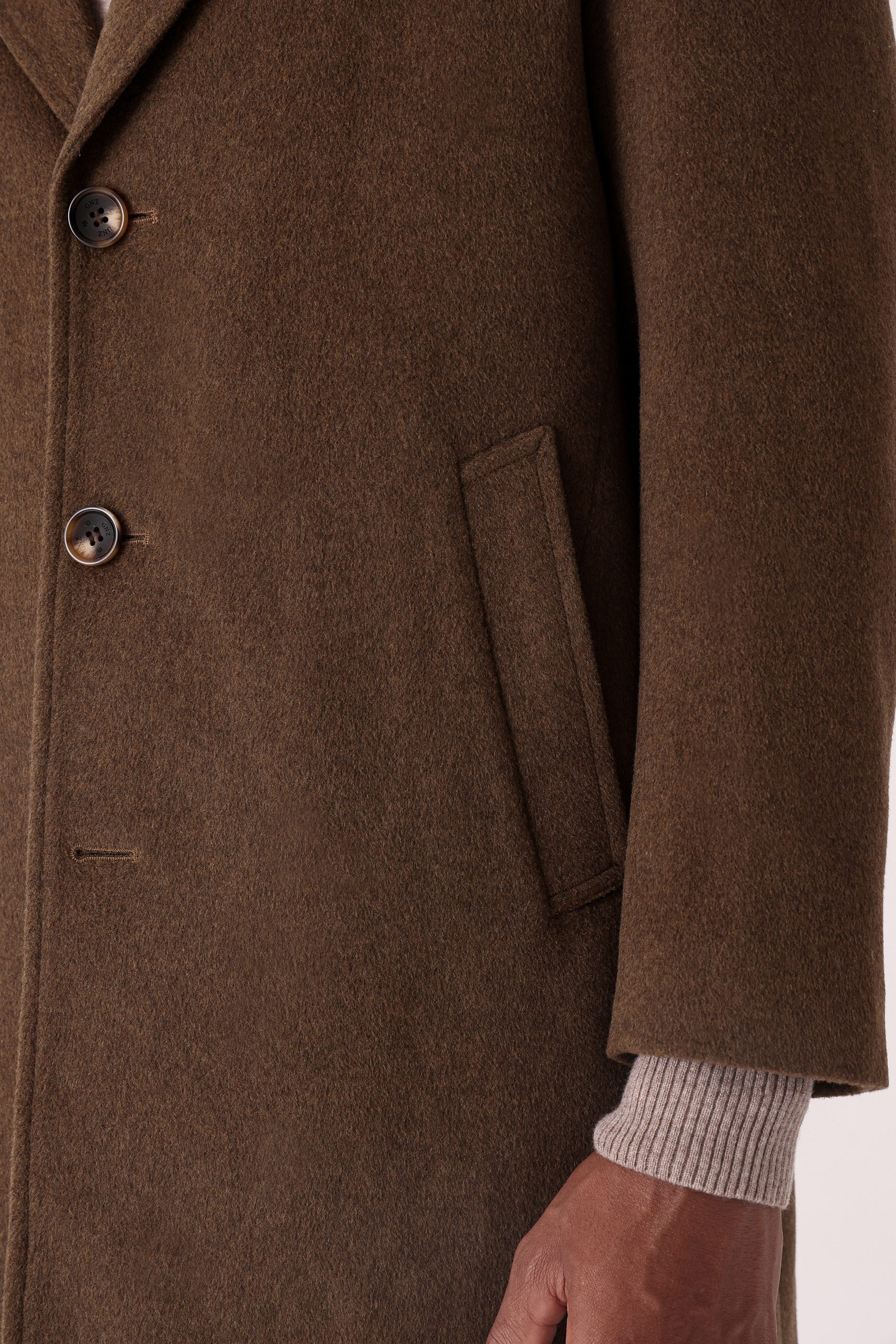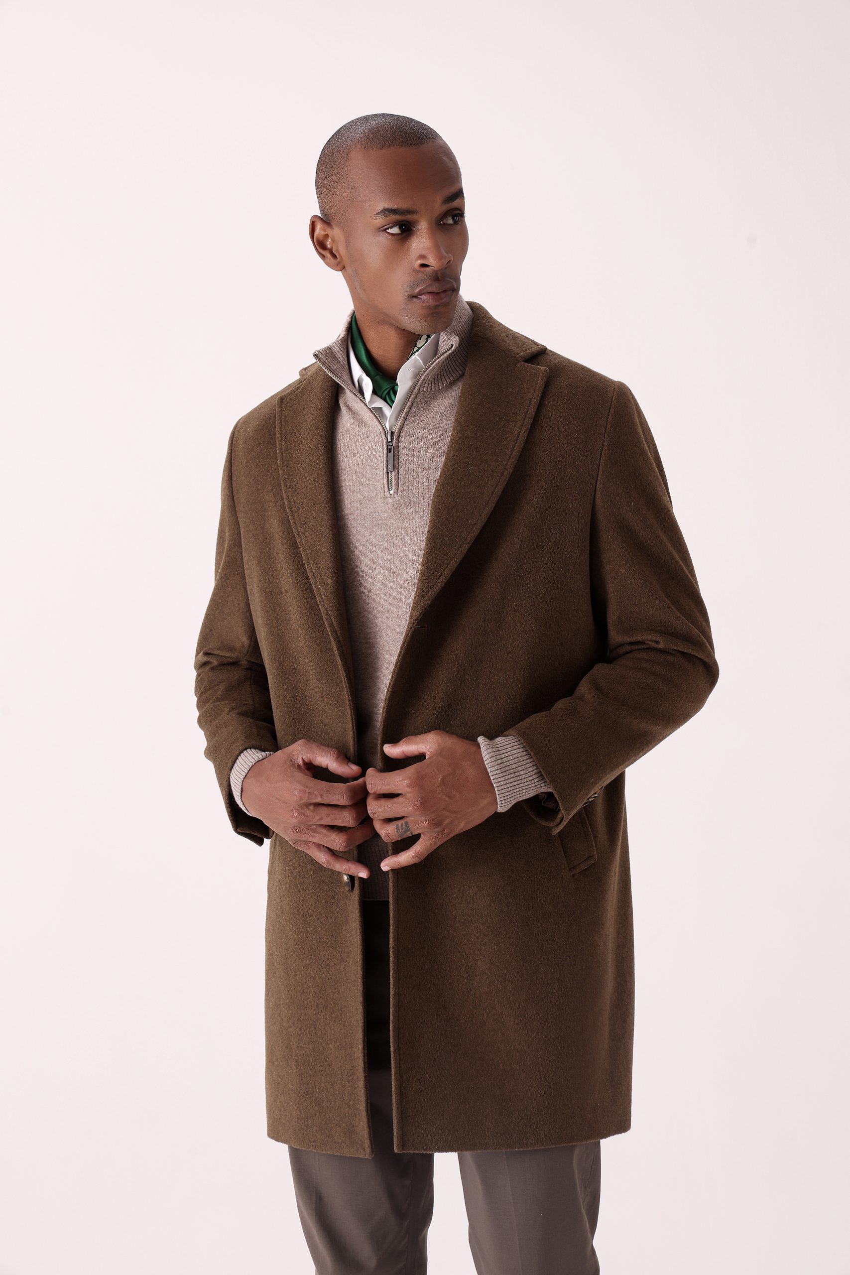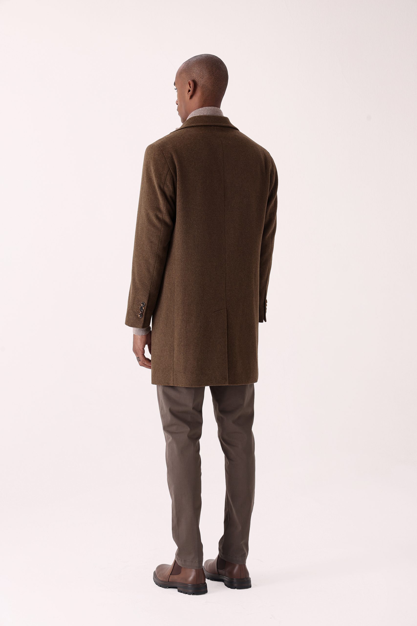 Sobretodo liso de hombre. Recto con 3 botones. Solapa en punta. Interior con forro. Abertura trasera simple. Moldería regular.