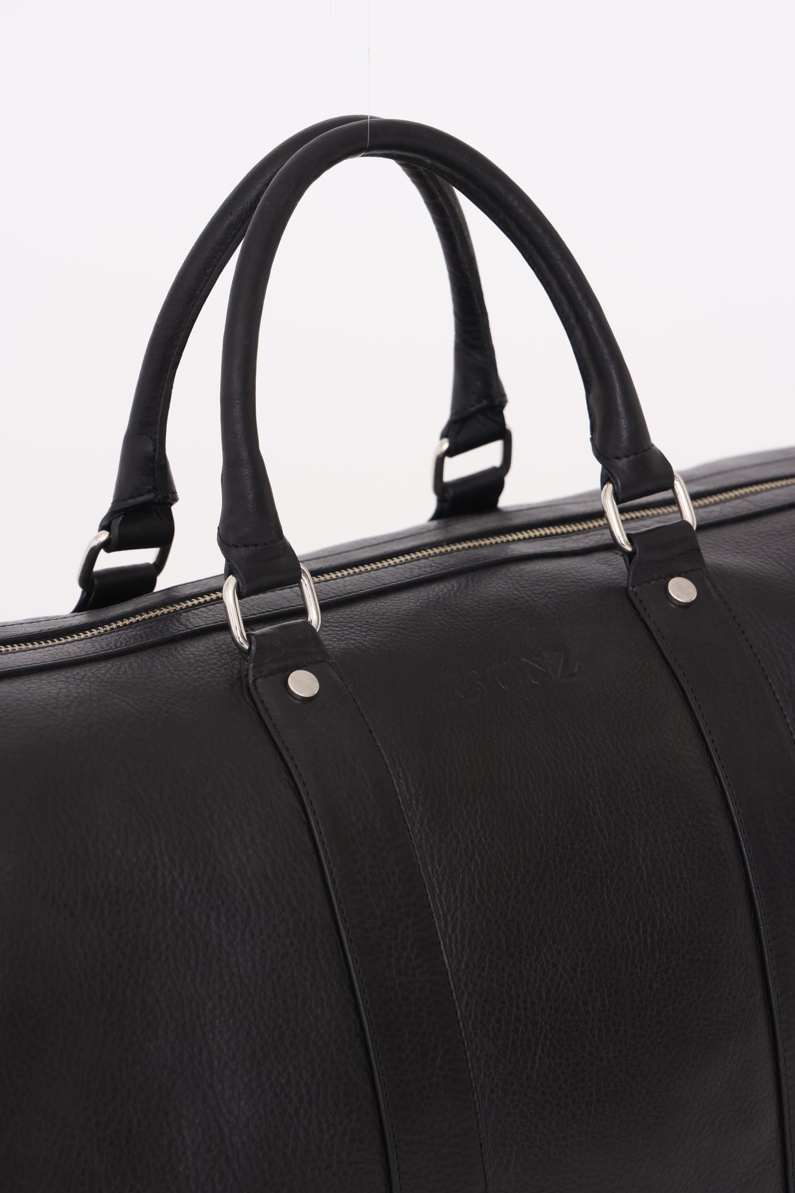 Bolso de cuero vacuno, interior forrado en poliester. Bolsillo interno con cierre. Asa de cuero y correa extensible.