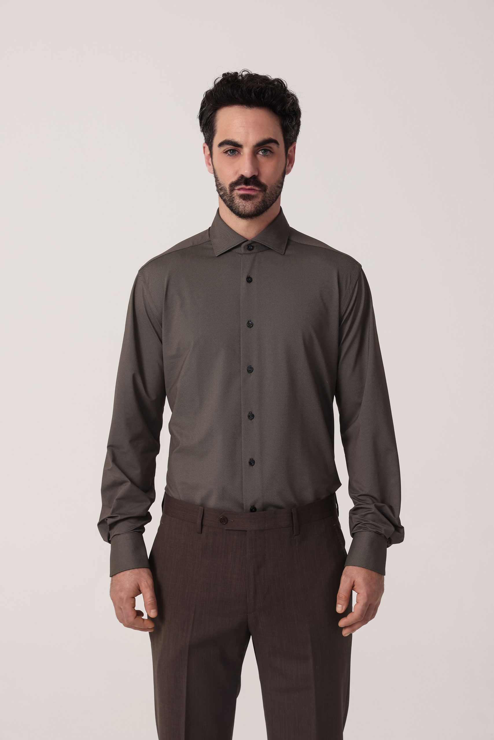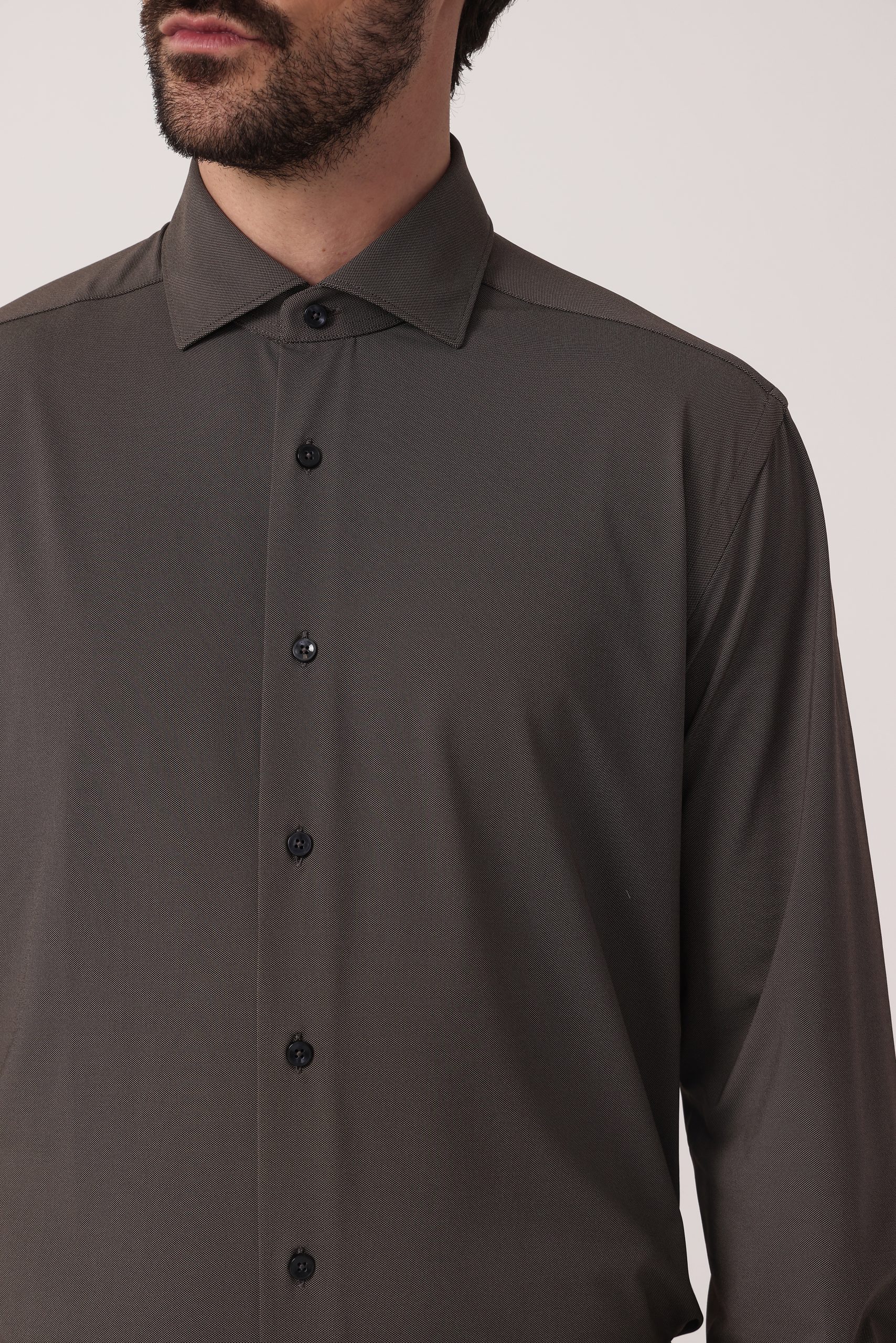 Camisa de vestir Xacus. Cuello italiano. Cartera simple. Moldería regular.