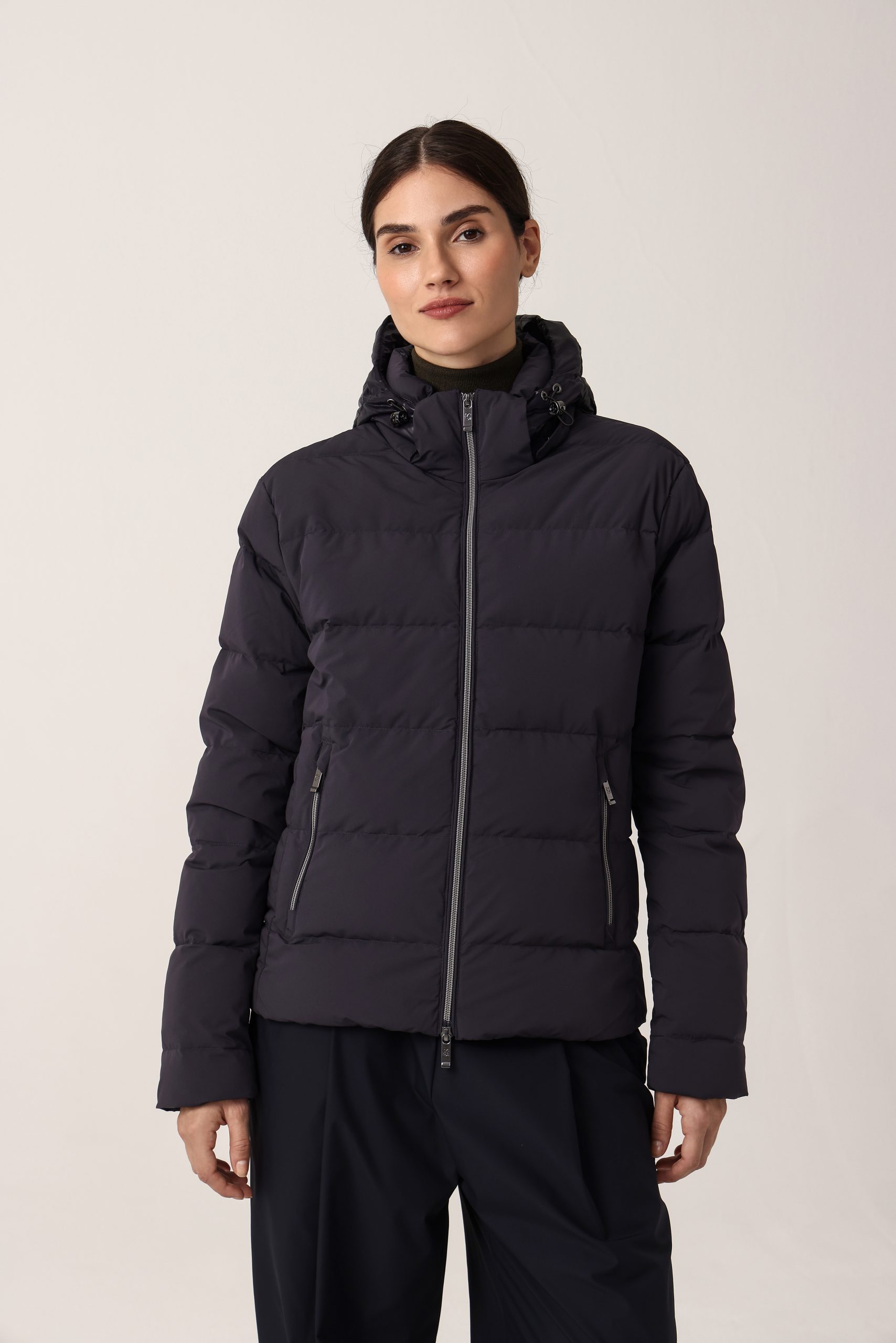 Composición 92% poliamida 8% elastano. Relleno 100% pluma.