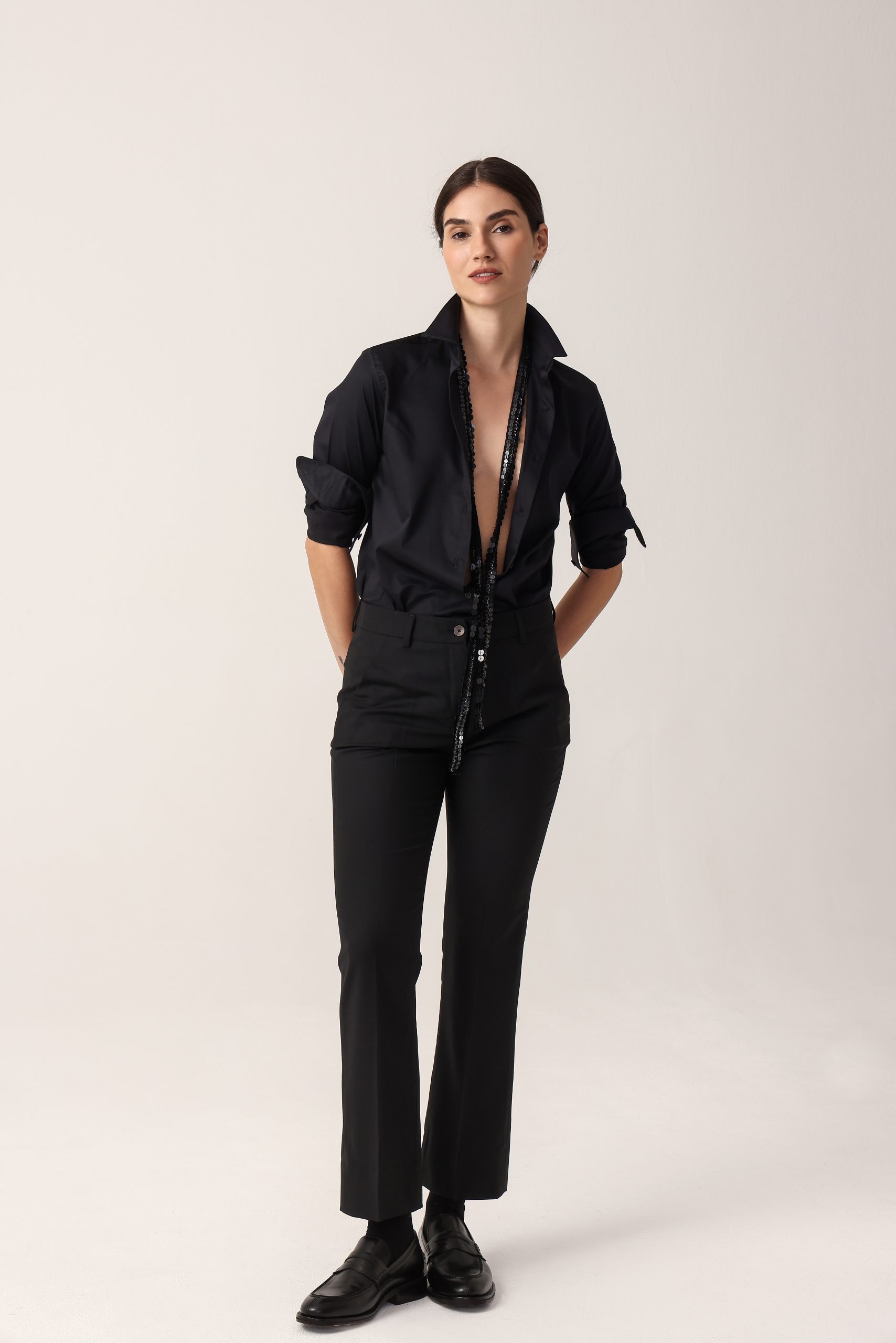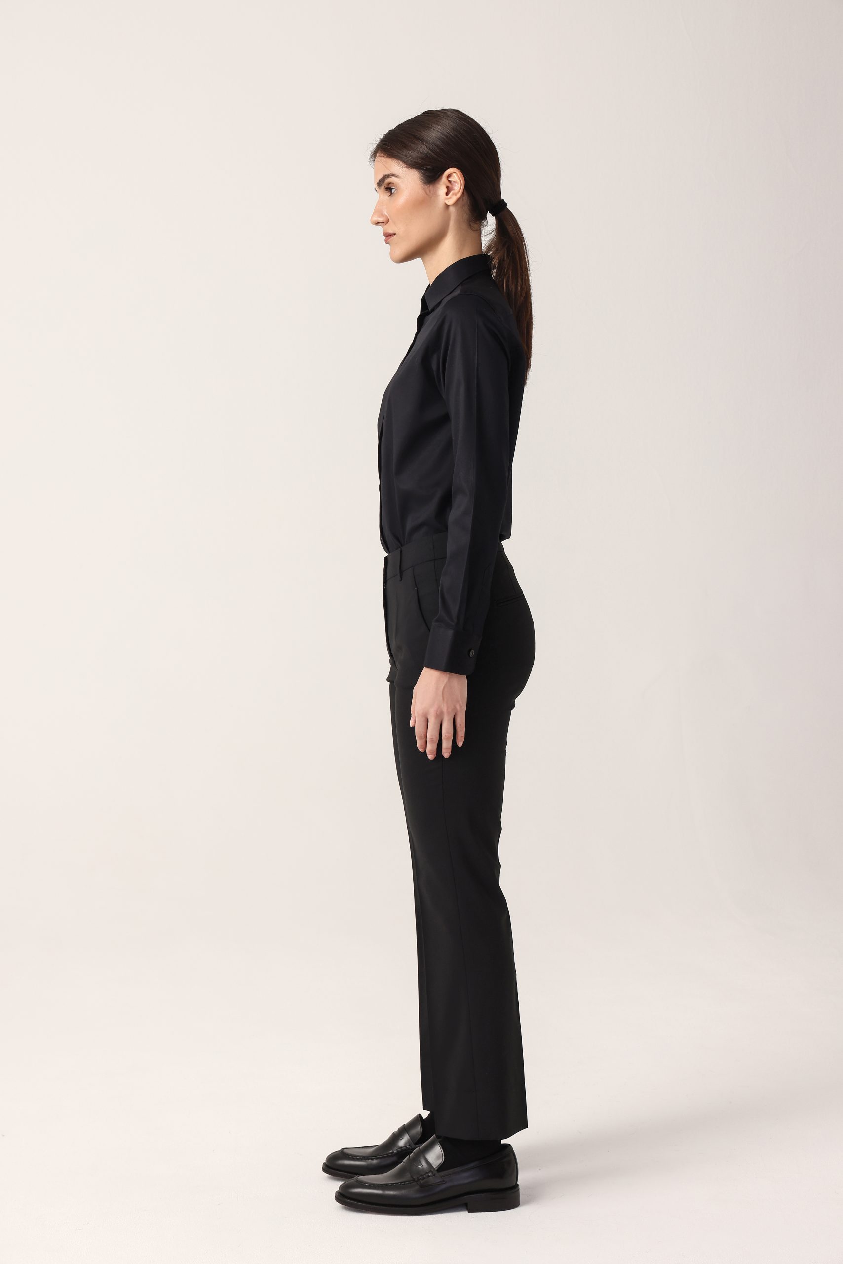 Pantalón de dama palazzo Loro Piana. Cintura recta sin pinza. Moldería regular.