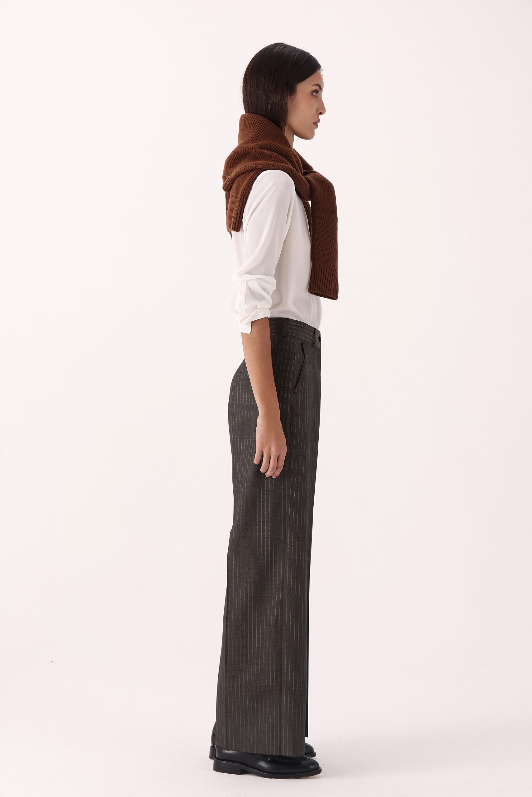 Pantalón de vestir liso de dama. Cintura recta con pinzas. Cartera simple. Molderia wide leg