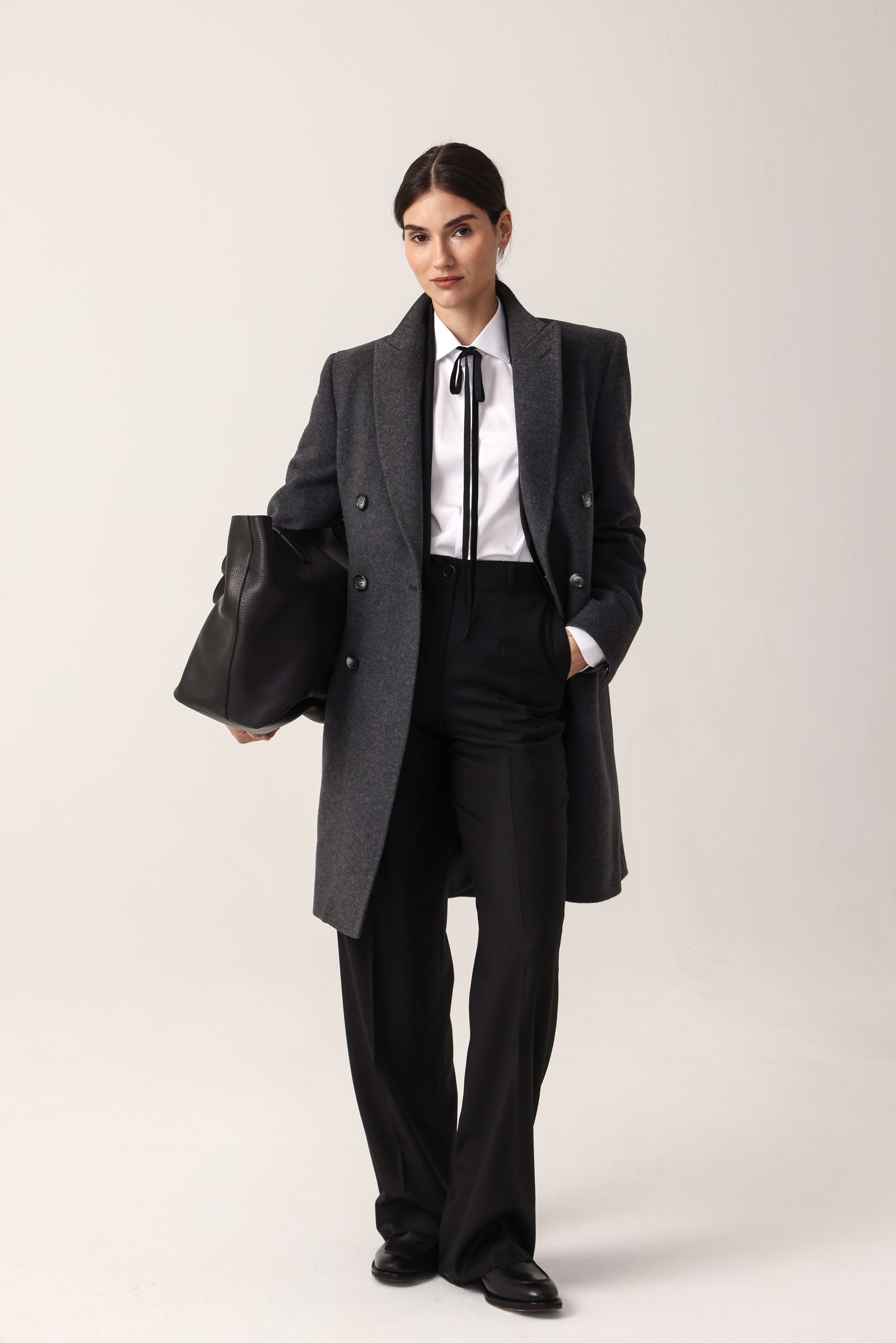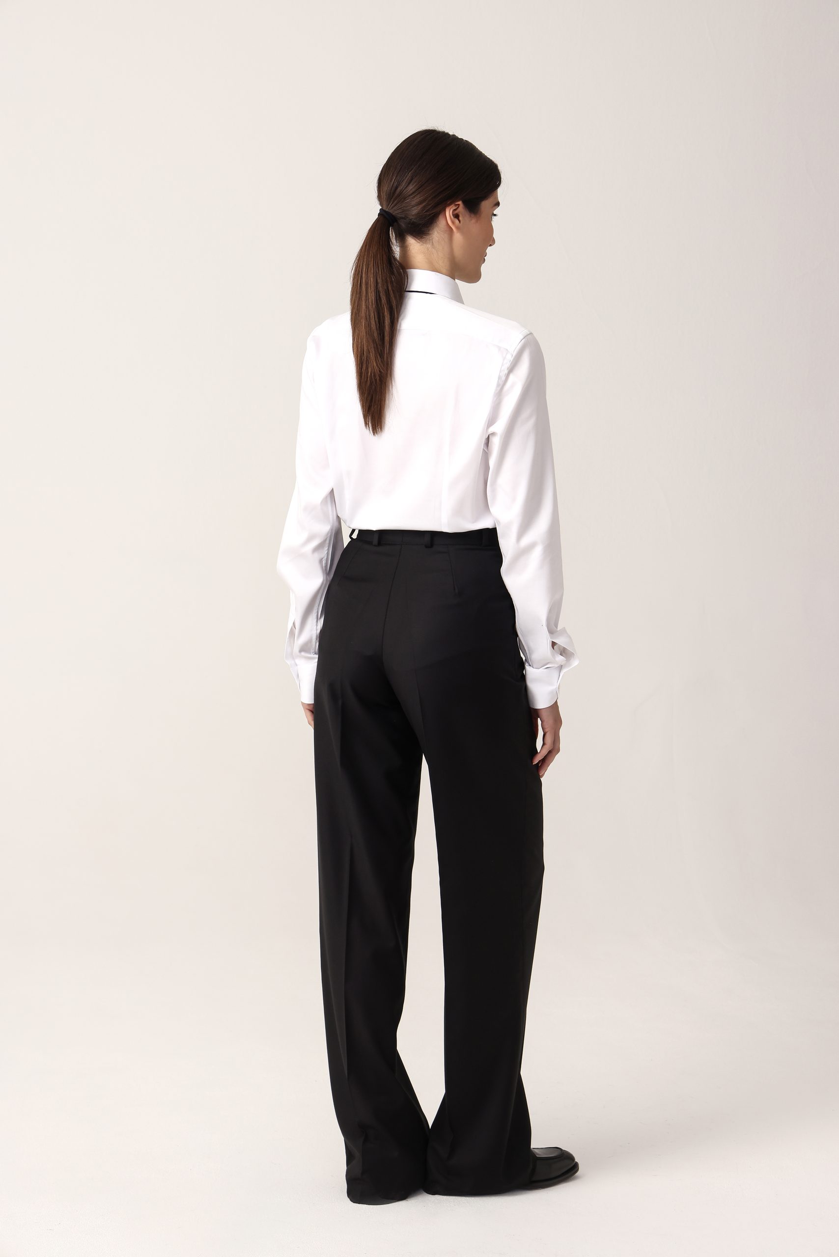 Pantalón de dama palazzo. Cintura recta con pinzas. Moldería regular.