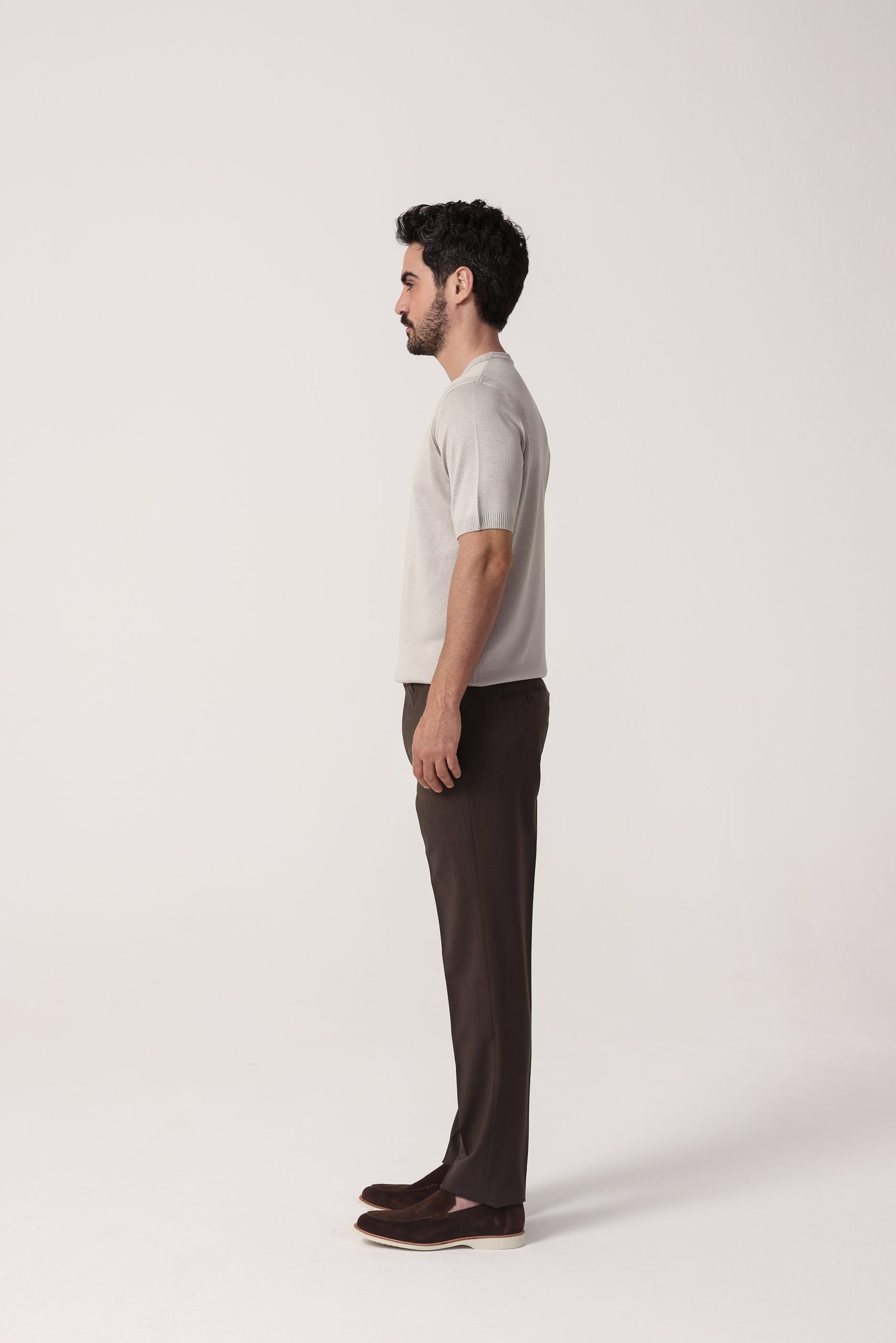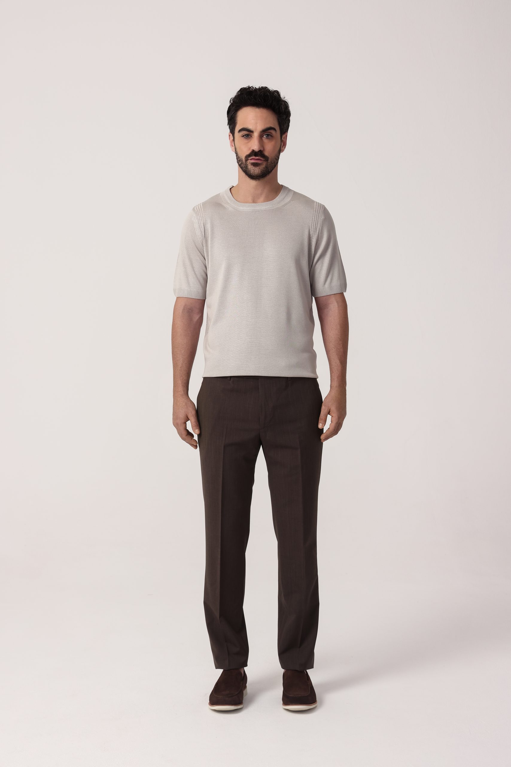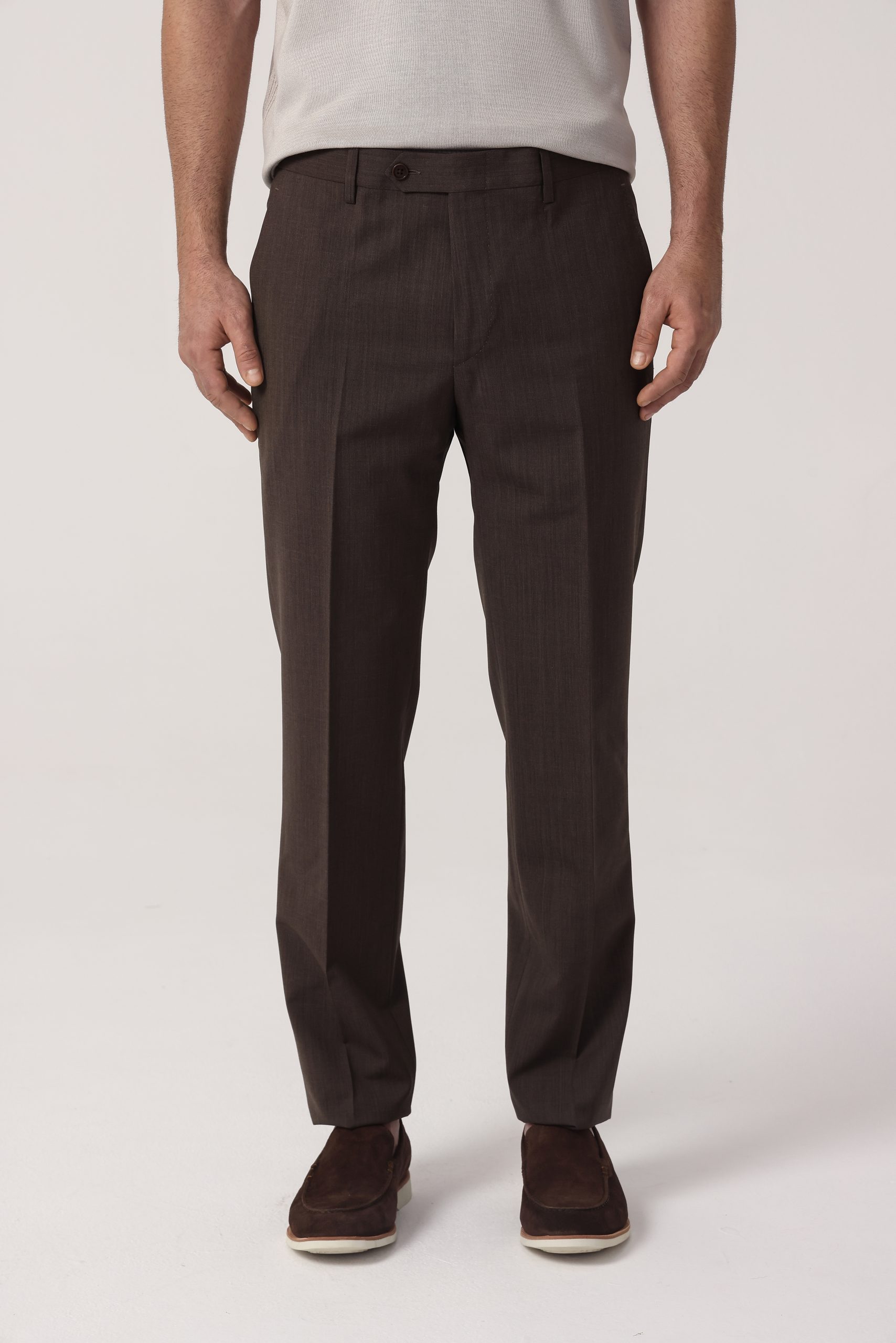 Pantalón recto de vestir Tombolini. Cintura cruzada sin pinzas con cartera simple. Moldería regular.