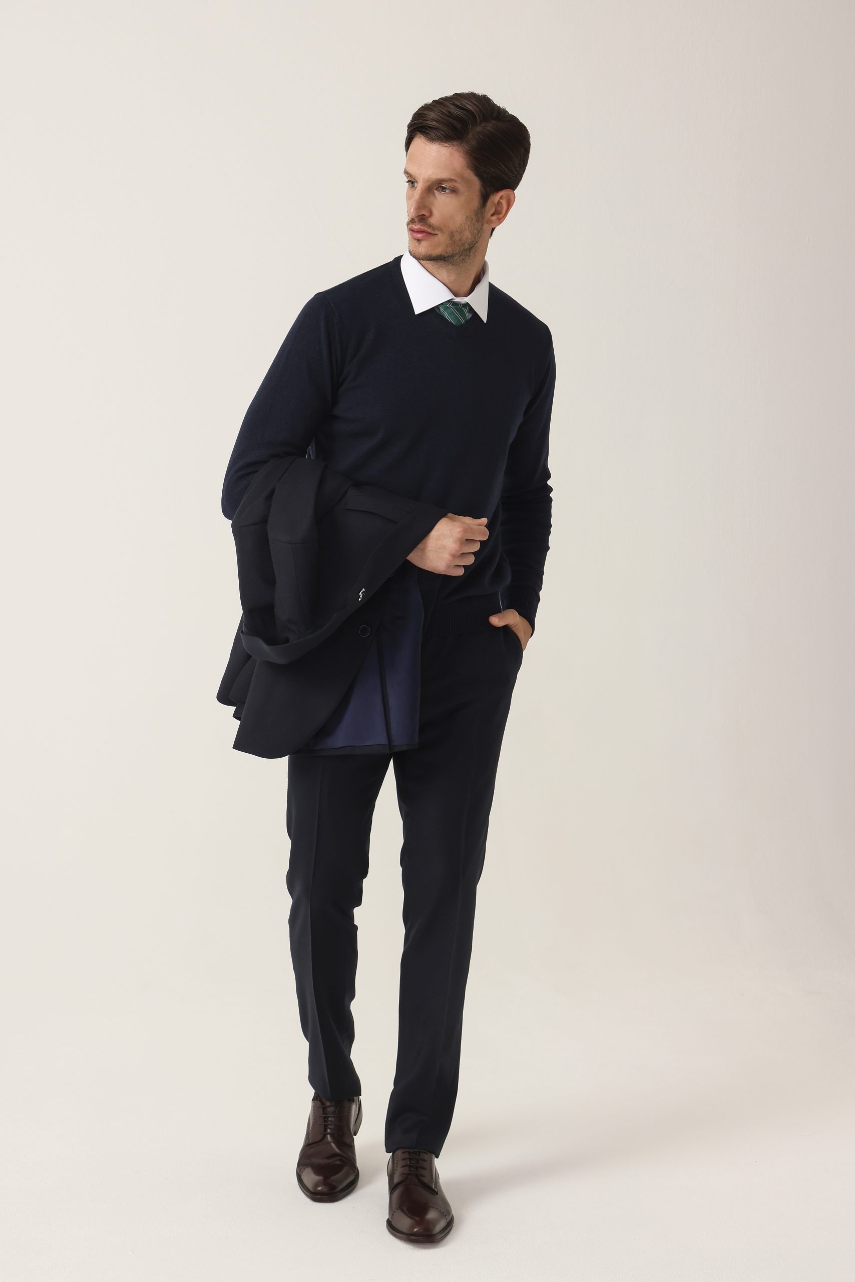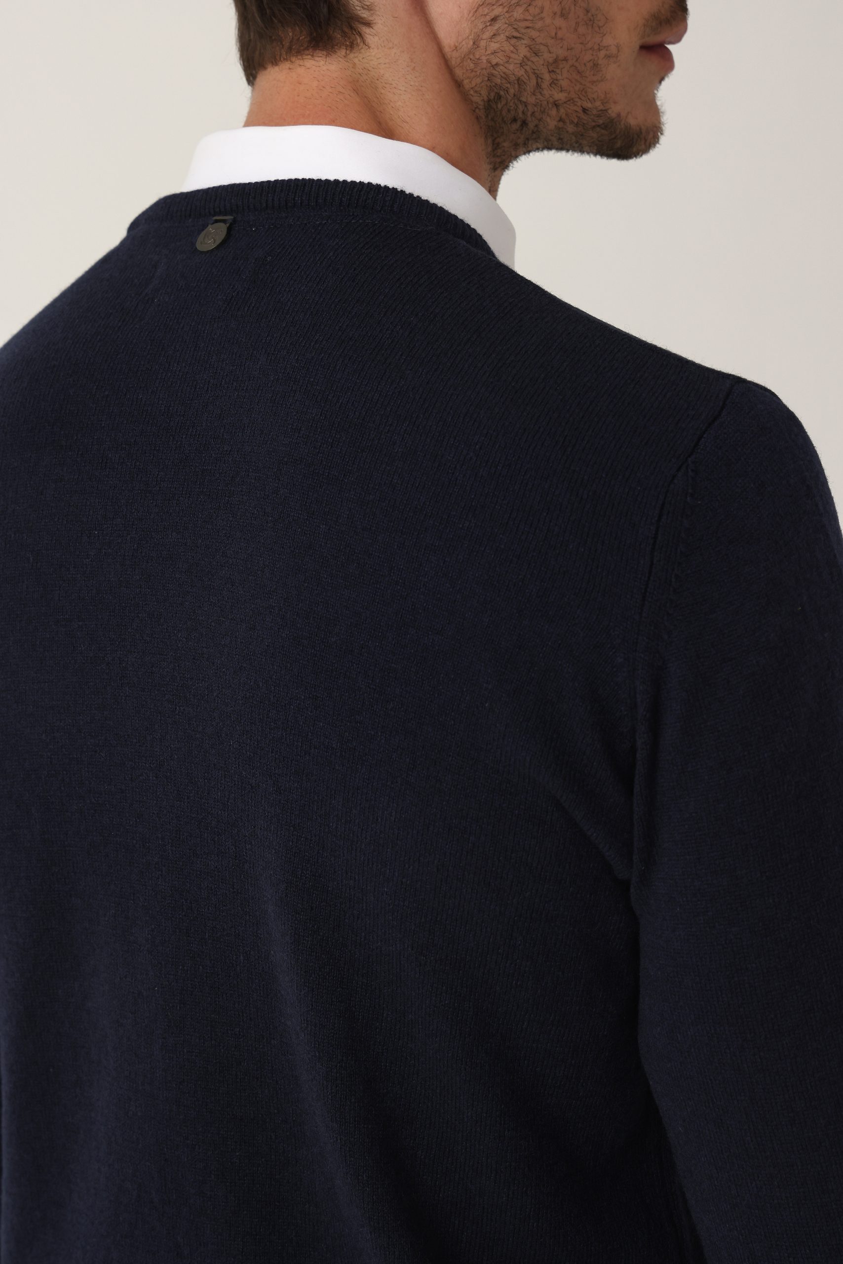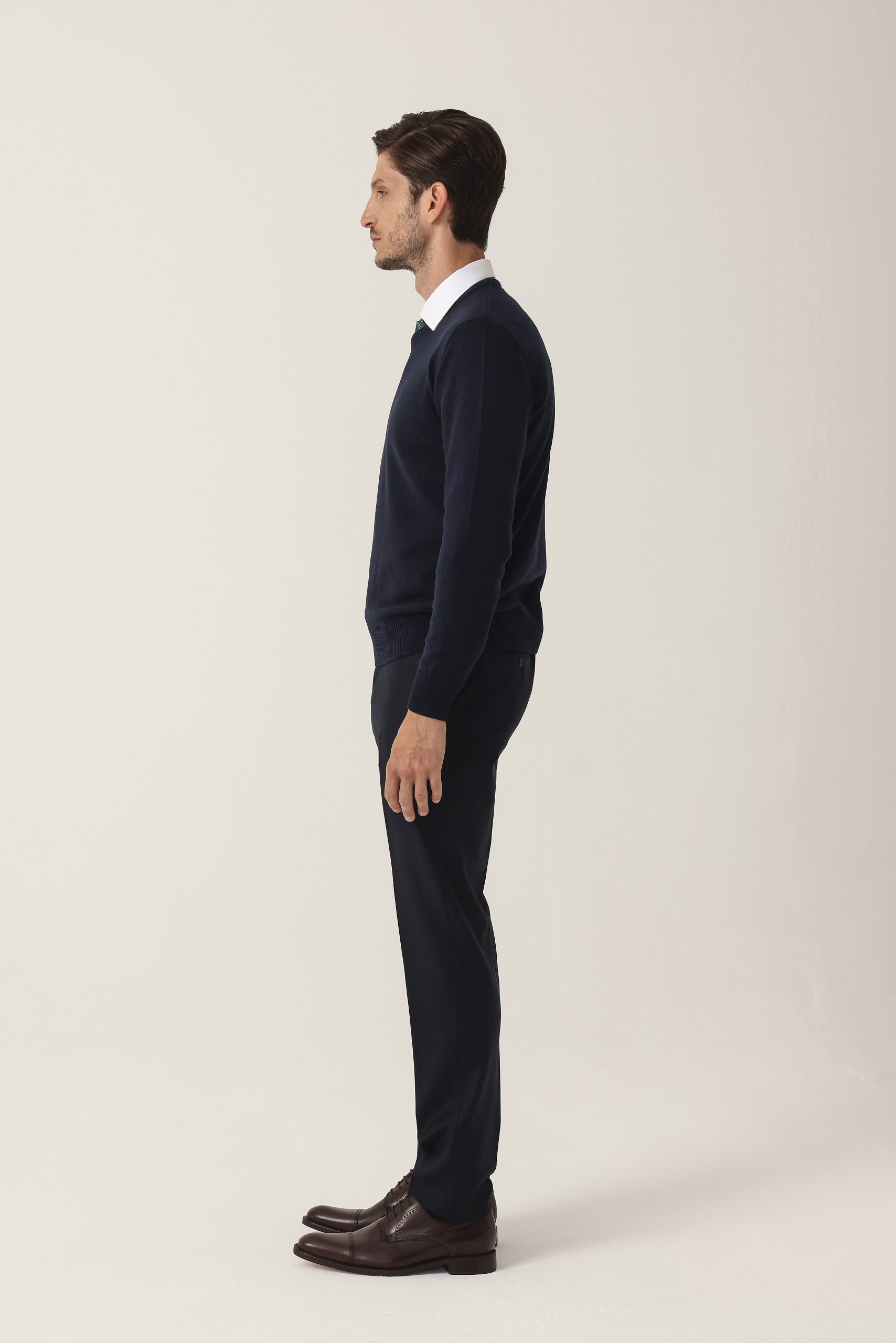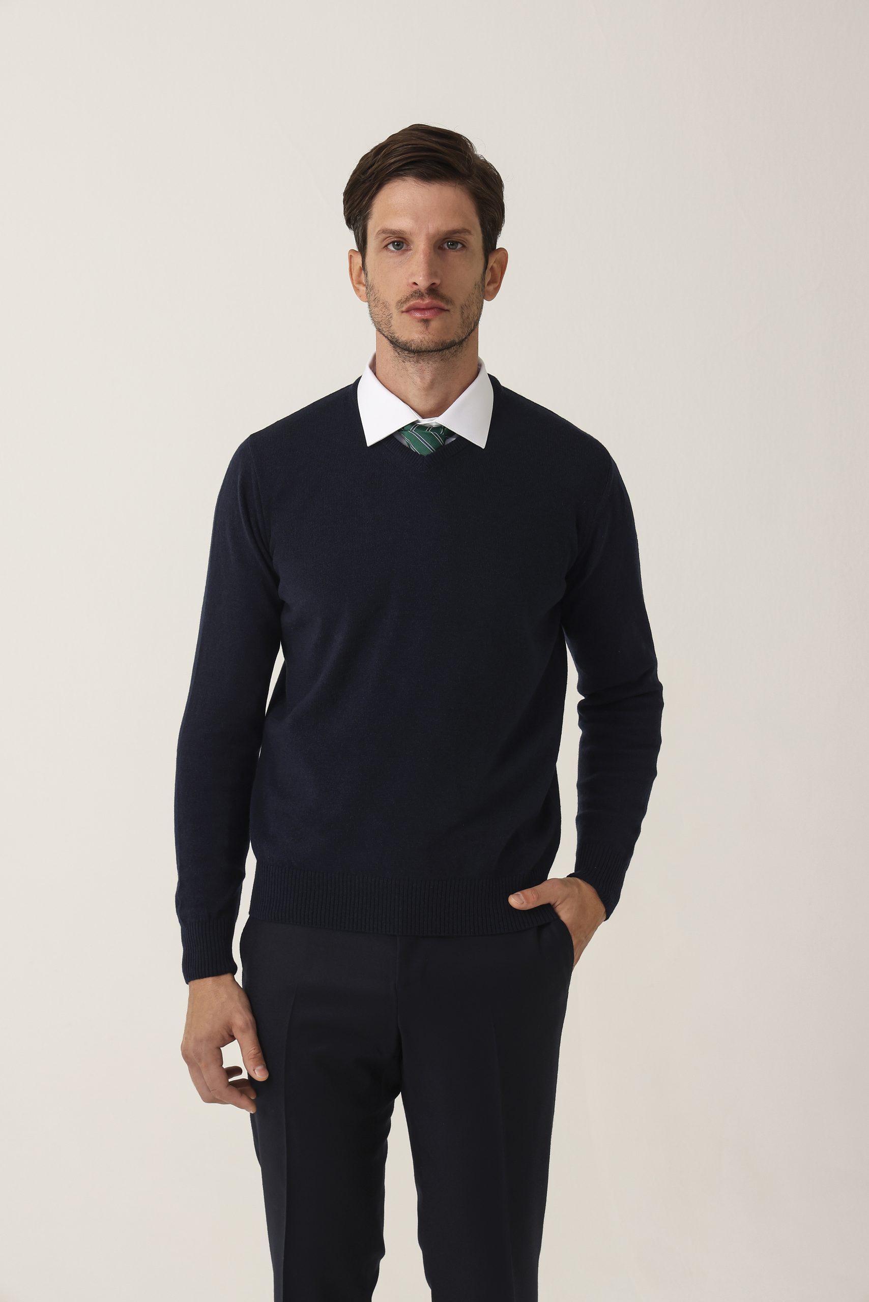 Sweater liso cuello V. Mangas y cinturas con puño. Moldería regular.